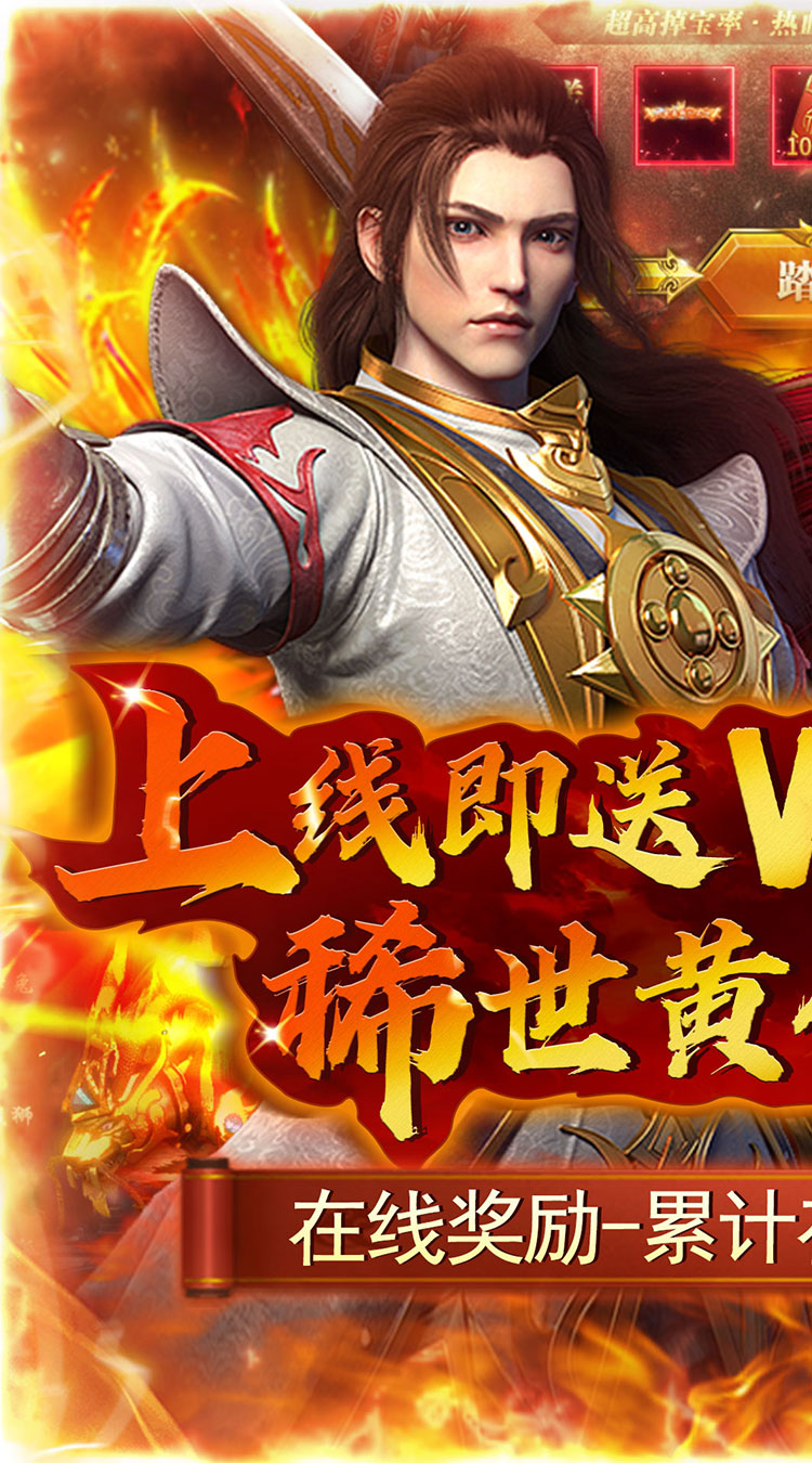 1.上线即送V5、百万元宝、打金称号、稀世黄金战狮