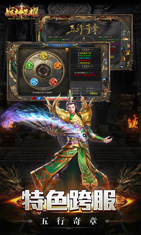 2、特色跨服活动五行奇章,跨服激情五行跨服战,合成超强五行奇章!
