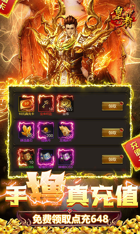 2、每日登陆手撸648元真充的充值福利活动!手速刷充激活所有累充,还有很多现金boss等你来爆!