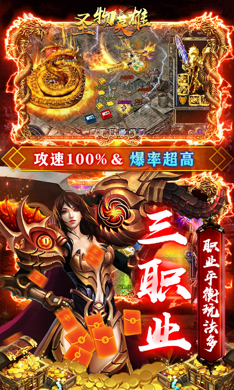 《圣物英雄(买断唯一服)》是一款微变三职业传奇手游。沿用了经典的传奇登录界面,完美复现了战士、法师和道士三大职业风云际会。快来和兄弟一起热血攻城,奋战到底,重铸属于你们的热血霸业!战士近战格斗,法师群体攻击,道士召唤神兽。打怪掉宝、活动产宝、职业技能,自由PK。