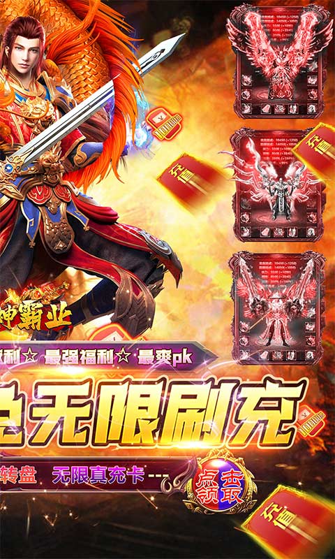 3、每日签到登录送真充,全图boss无限爆真充!转生福利送万元充值卡,助您称霸全服!