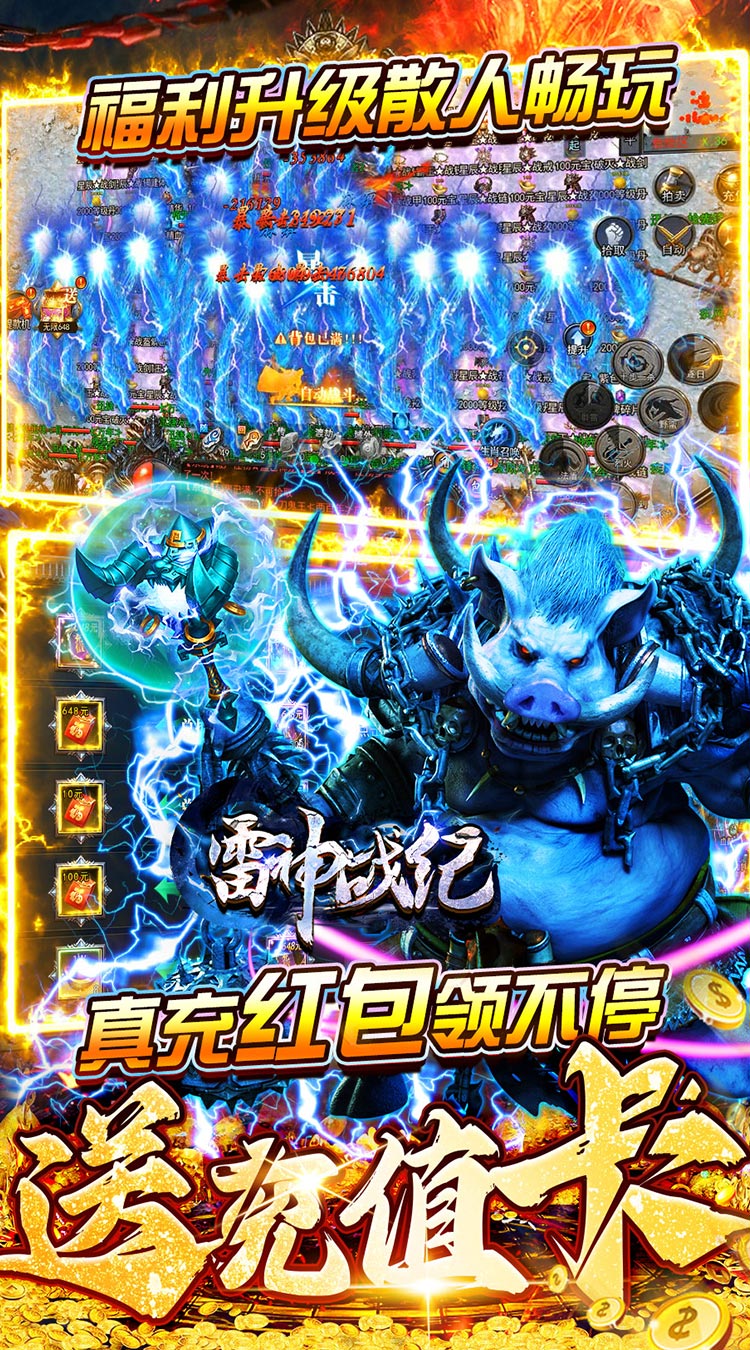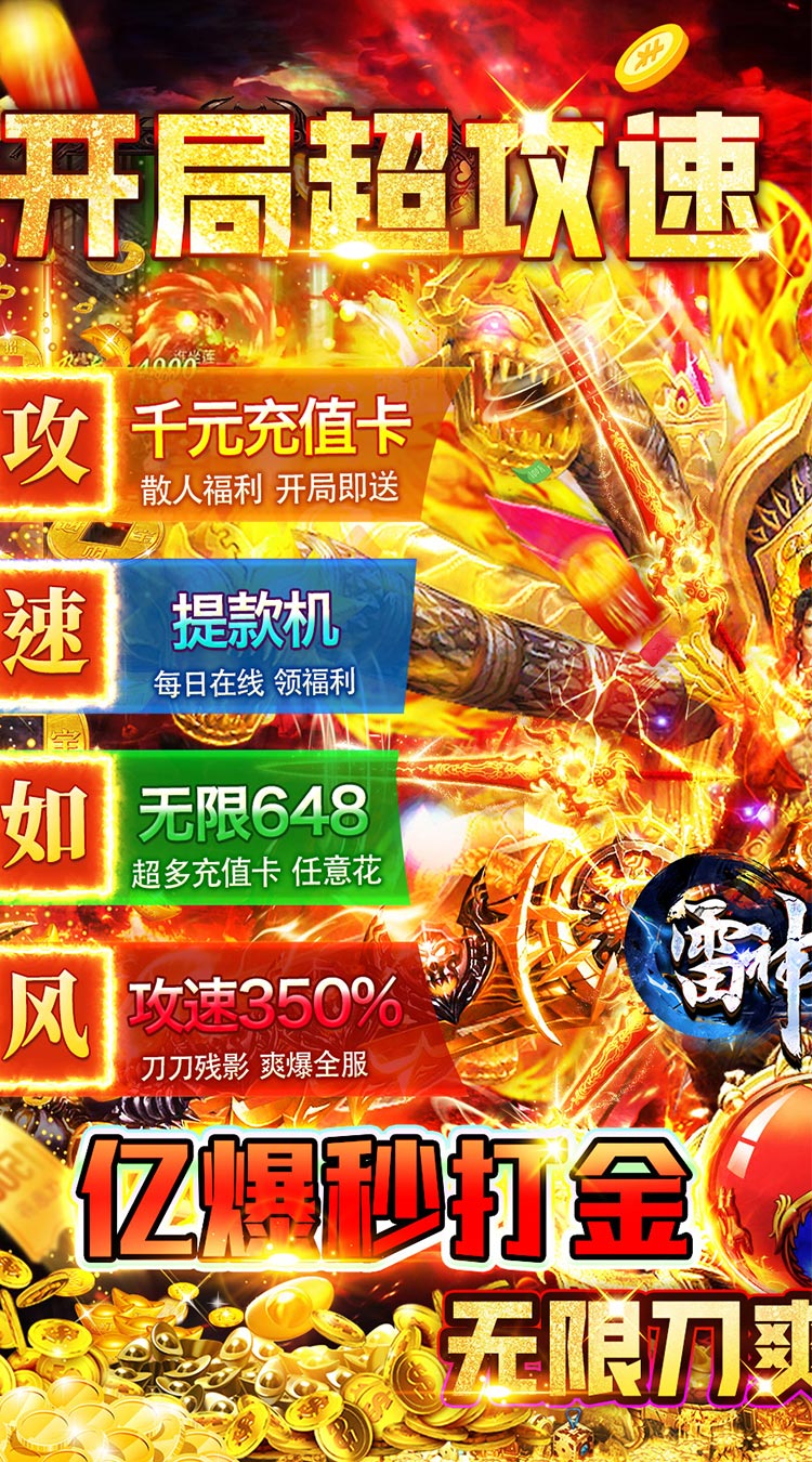 攻速如风,无限领充。全新福利无限刀复古传奇《雷神战纪》燃情上线!保留原汁原味的经典玩法,游戏品质全面升级,350%超强攻速助力传奇霸业。自由打金无上限,超多充值卡等你来领,热血跨服PK激情重燃,超级群攻技能助您制霸沙场,即刻开启全新传奇之路!